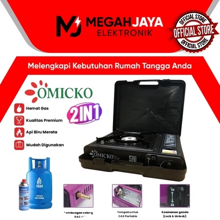 OMICKO KOMPOR PORTABLE 2 IN 1 GAS PORTABLE (1 TUNGKU) GARANSI RESMI